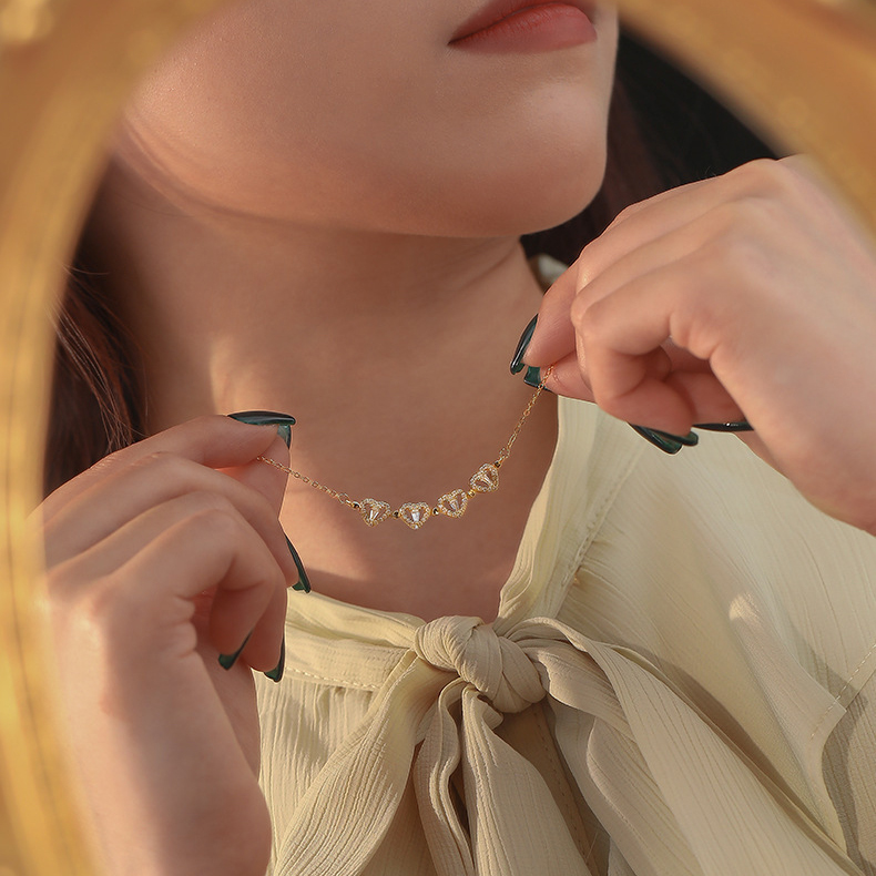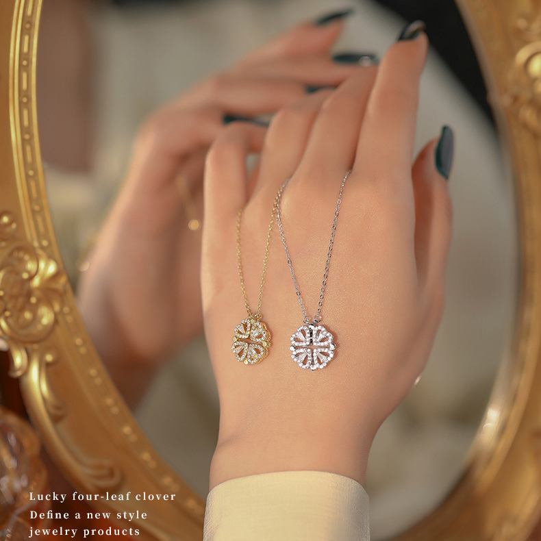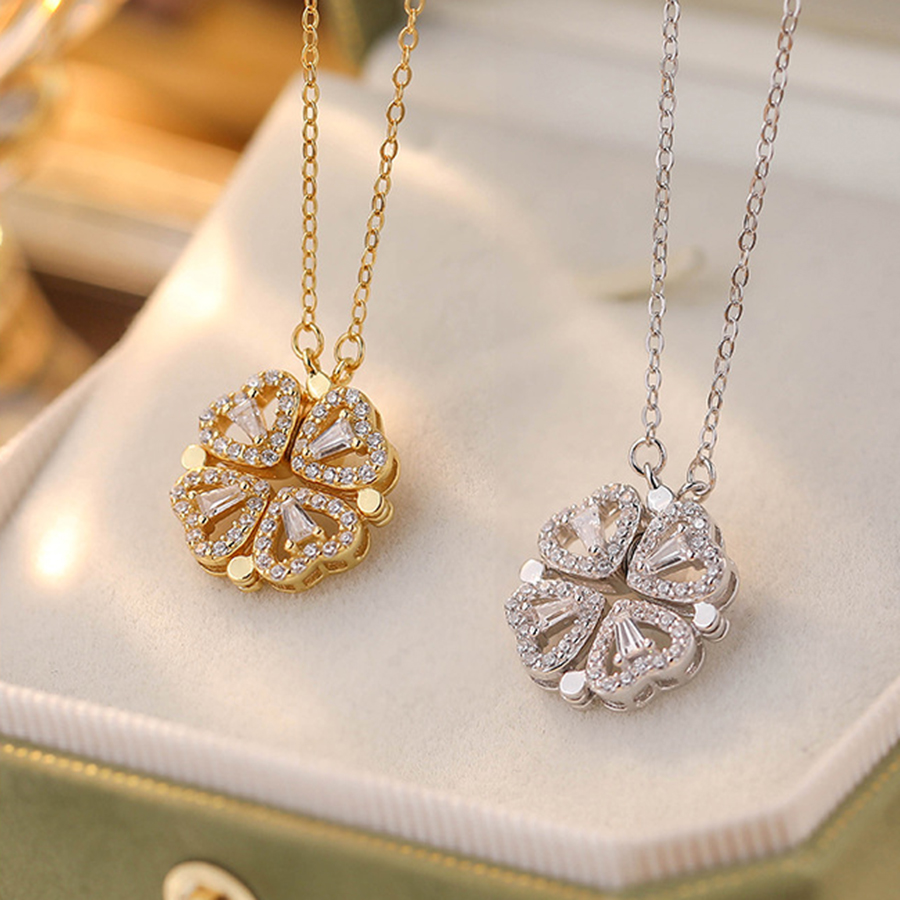 Dây chuyền Cỏ bốn lá trái tim đính đá